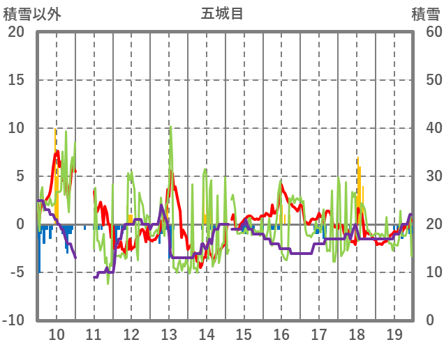 | 日 | 時 | 気温 | 降水 | 風向/風速 | 日照 | 積雪 | 降雪 |