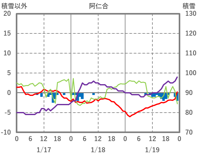 | 日 | 時 | 気温 | 降水 | 風向/風速 | 日照 | 積雪 | 降雪 |