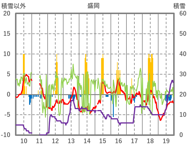| 日 | 時 | 気温 | 降水 | 風向/風速 | 日照 | 積雪 | 降雪 |