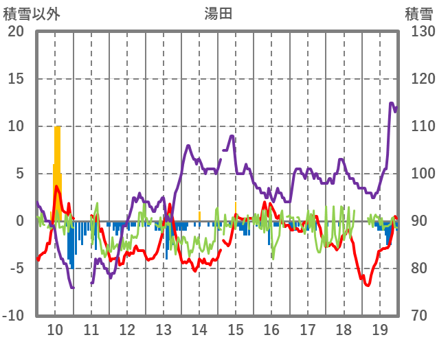| 日 | 時 | 気温 | 降水 | 風向/風速 | 日照 | 積雪 | 降雪 |