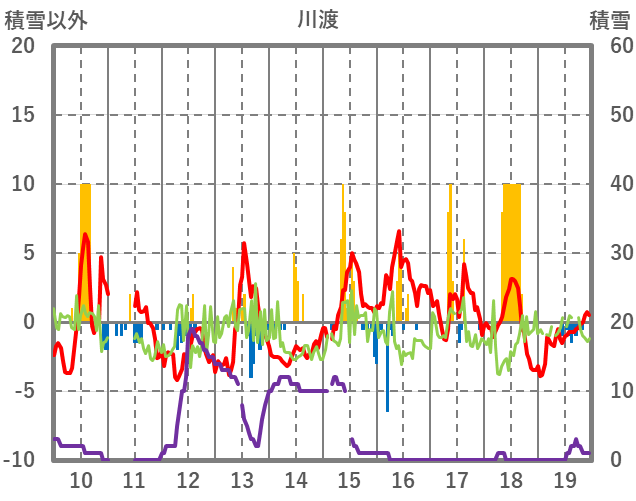 | 日 | 時 | 気温 | 降水 | 風向/風速 | 日照 | 積雪 | 降雪 |