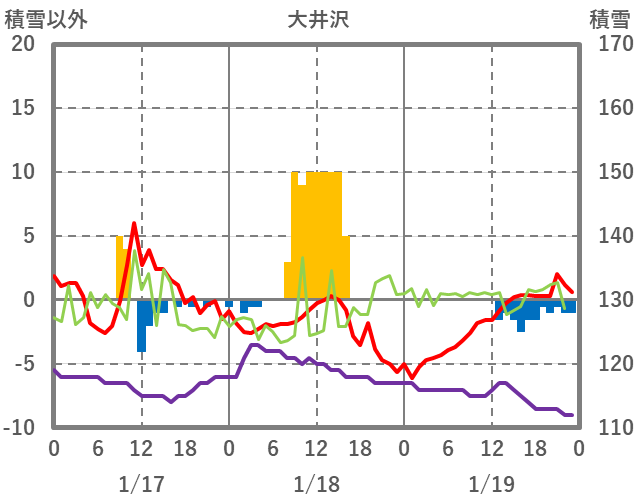 | 日 | 時 | 気温 | 降水 | 風向/風速 | 日照 | 積雪 | 降雪 |