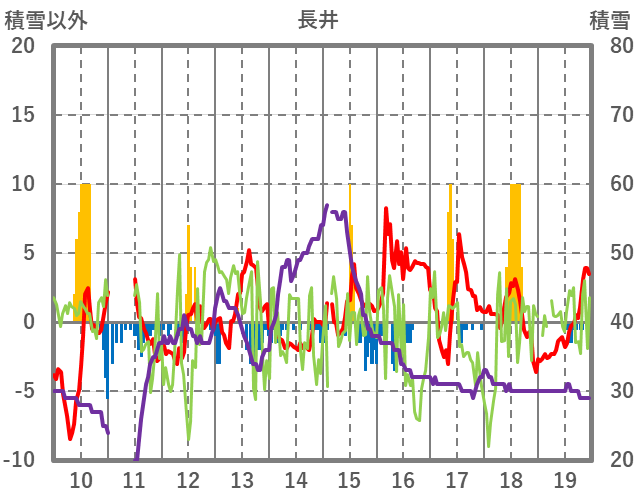 | 日 | 時 | 気温 | 降水 | 風向/風速 | 日照 | 積雪 | 降雪 |