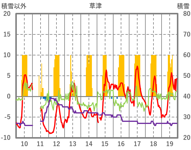 | 日 | 時 | 気温 | 降水 | 風向/風速 | 日照 | 積雪 | 降雪 |
