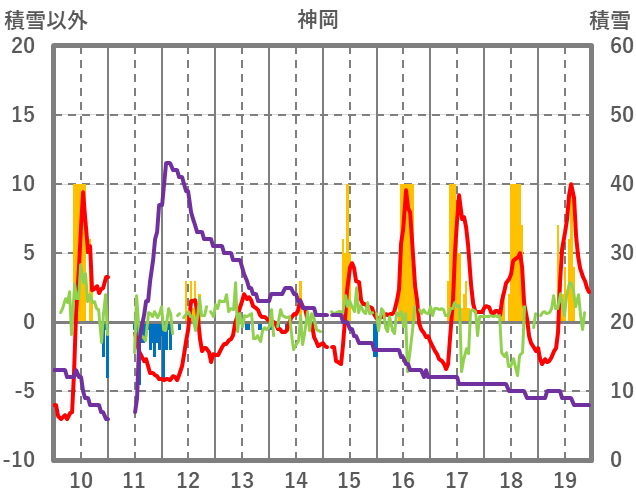 | 日 | 時 | 気温 | 降水 | 風向/風速 | 日照 | 積雪 | 降雪 |