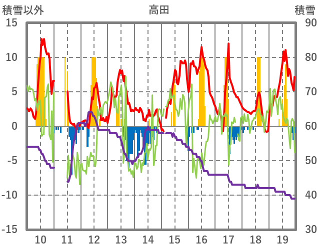| 日 | 時 | 気温 | 降水 | 風向/風速 | 日照 | 積雪 | 降雪 |