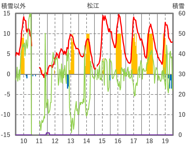 | 日 | 時 | 気温 | 降水 | 風向/風速 | 日照 | 積雪 | 降雪 |