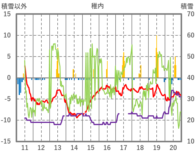| 22 | -5.4 | 0.5 | NNW/9.3 | 0 | 19 | 0 | |