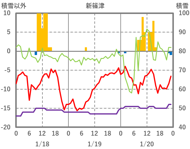 | 日 | 時 | 気温 | 降水 | 風向/風速 | 日照 | 積雪 | 降雪 |