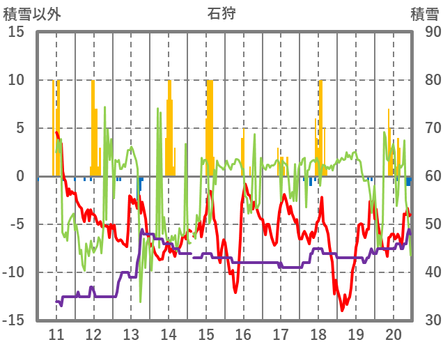 | 日 | 時 | 気温 | 降水 | 風向/風速 | 日照 | 積雪 | 降雪 |