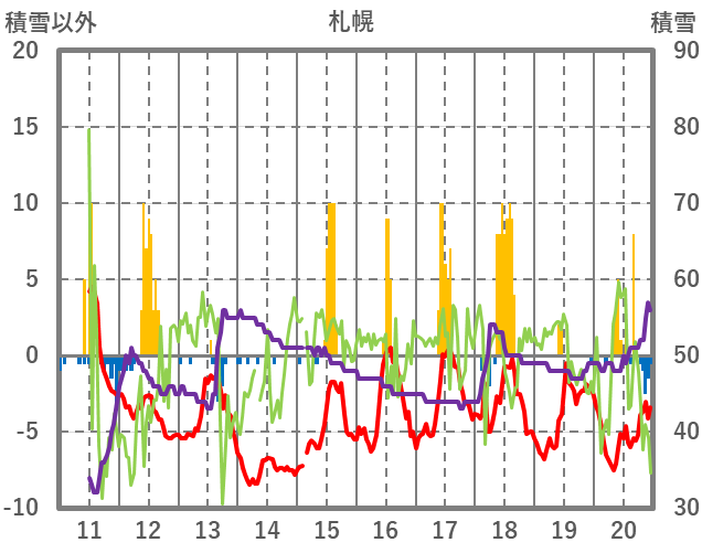 | 日 | 時 | 気温 | 降水 | 風向/風速 | 日照 | 積雪 | 降雪 |