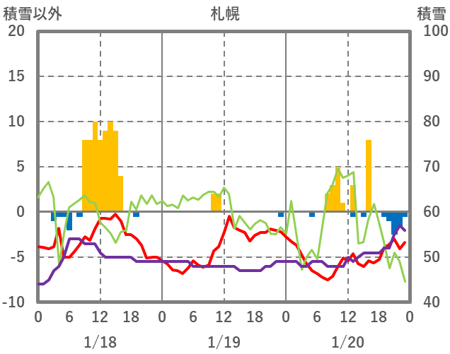 | 日 | 時 | 気温 | 降水 | 風向/風速 | 日照 | 積雪 | 降雪 |