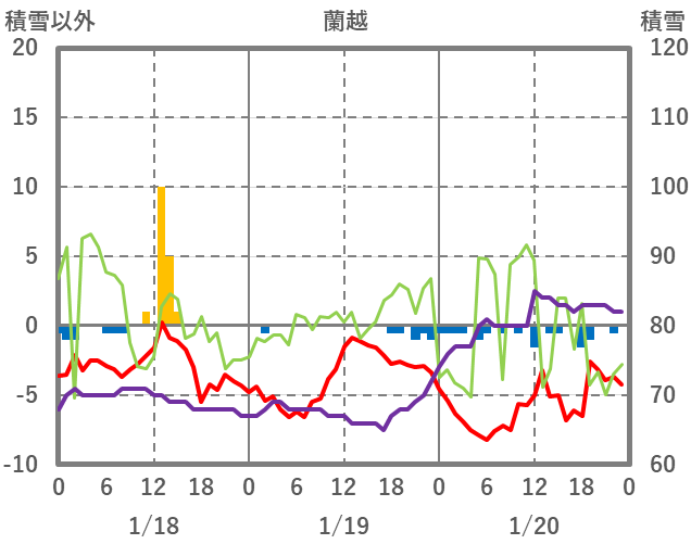 | 日 | 時 | 気温 | 降水 | 風向/風速 | 日照 | 積雪 | 降雪 |