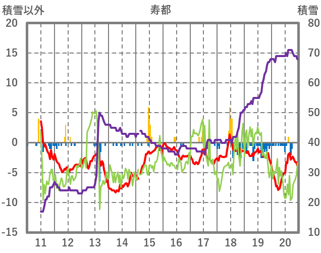 | 日 | 時 | 気温 | 降水 | 風向/風速 | 日照 | 積雪 | 降雪 |