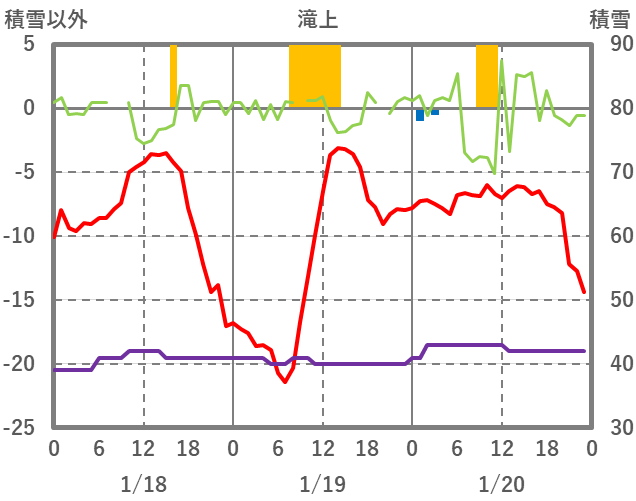 | 日 | 時 | 気温 | 降水 | 風向/風速 | 日照 | 積雪 | 降雪 |