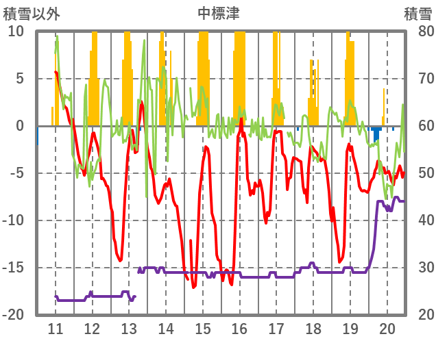 | 日 | 時 | 気温 | 降水 | 風向/風速 | 日照 | 積雪 | 降雪 |