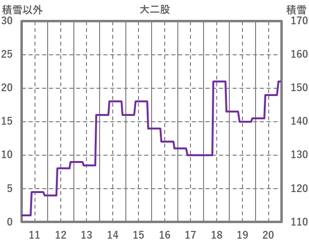 | 日 | 時 | 気温 | 降水 | 風向/風速 | 日照 | 積雪 | 降雪 |