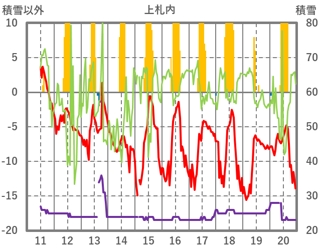 | 13 | -4.4 | 0 | NNW/3.5 | 30 | 24 | 0 | |