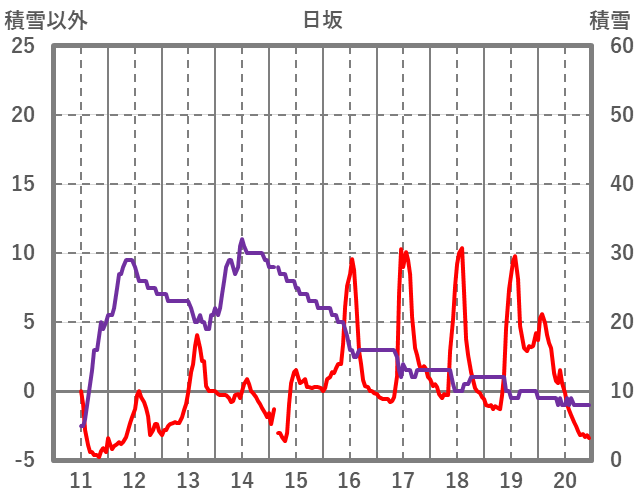 | 日 | 時 | 気温 | 降水 | 風向/風速 | 日照 | 積雪 | 降雪 |