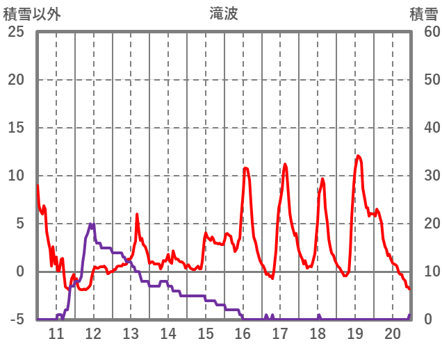 | 日 | 時 | 気温 | 降水 | 風向/風速 | 日照 | 積雪 | 降雪 |