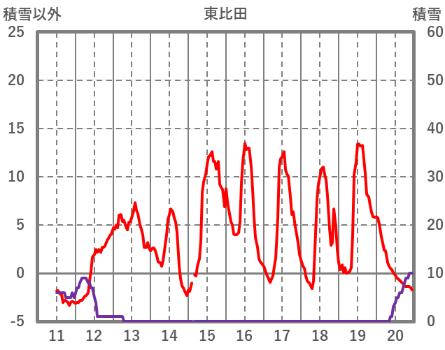 | 日 | 時 | 気温 | 降水 | 風向/風速 | 日照 | 積雪 | 降雪 |