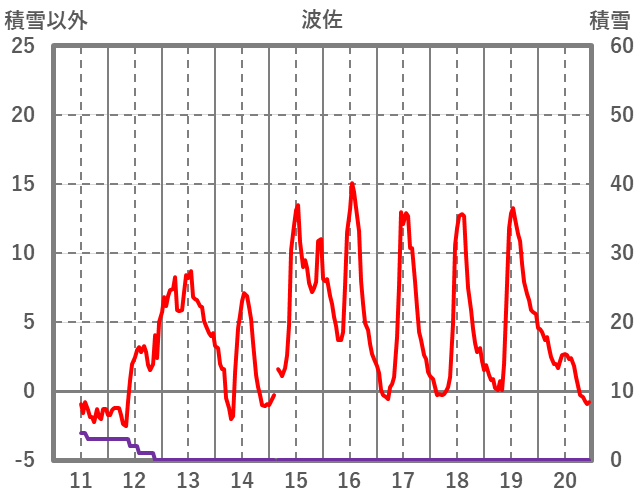 | 日 | 時 | 気温 | 降水 | 風向/風速 | 日照 | 積雪 | 降雪 |