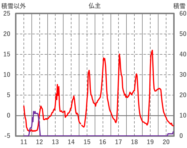 | 日 | 時 | 気温 | 降水 | 風向/風速 | 日照 | 積雪 | 降雪 |