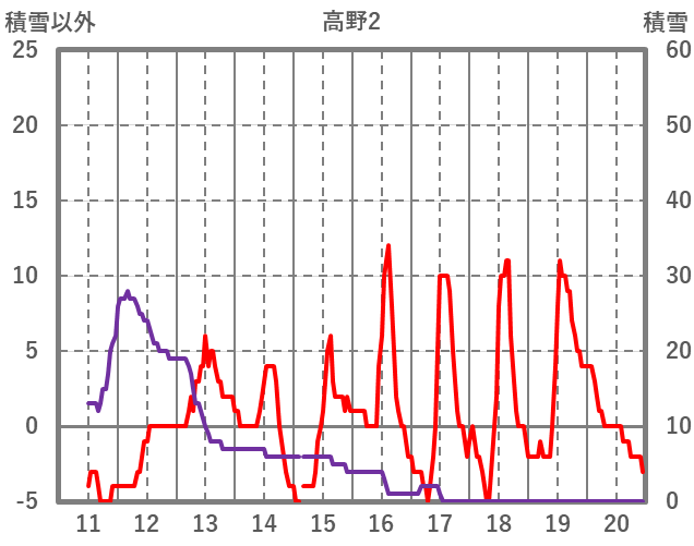 | 日 | 時 | 気温 | 降水 | 風向/風速 | 日照 | 積雪 | 降雪 |