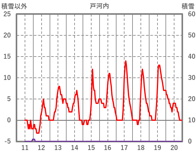 | 日 | 時 | 気温 | 降水 | 風向/風速 | 日照 | 積雪 | 降雪 |
