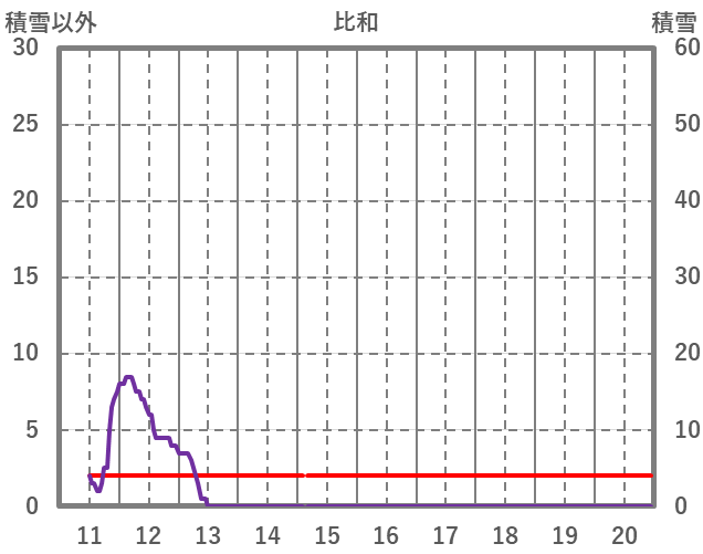 | 日 | 時 | 気温 | 降水 | 風向/風速 | 日照 | 積雪 | 降雪 |