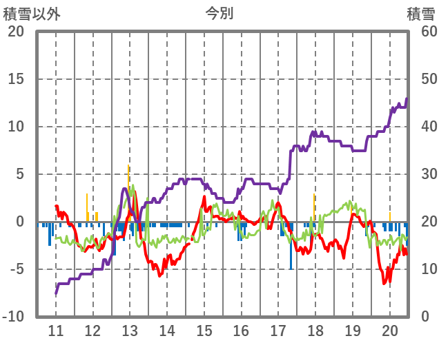 | 日 | 時 | 気温 | 降水 | 風向/風速 | 日照 | 積雪 | 降雪 |