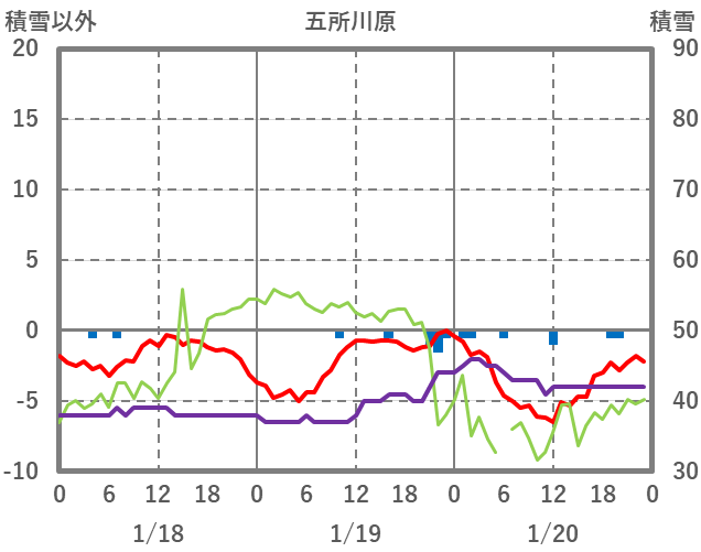 | 日 | 時 | 気温 | 降水 | 風向/風速 | 日照 | 積雪 | 降雪 |