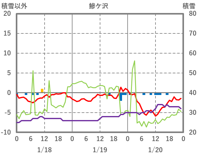 | 日 | 時 | 気温 | 降水 | 風向/風速 | 日照 | 積雪 | 降雪 |