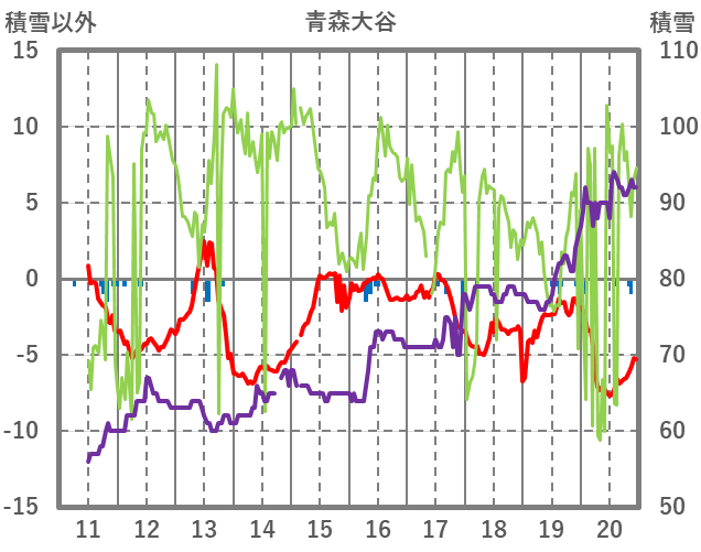 | 日 | 時 | 気温 | 降水 | 風向/風速 | 日照 | 積雪 | 降雪 |