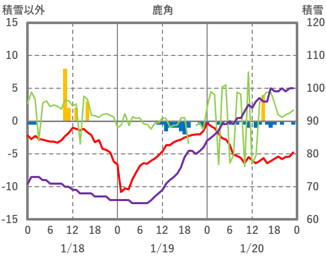| 日 | 時 | 気温 | 降水 | 風向/風速 | 日照 | 積雪 | 降雪 |