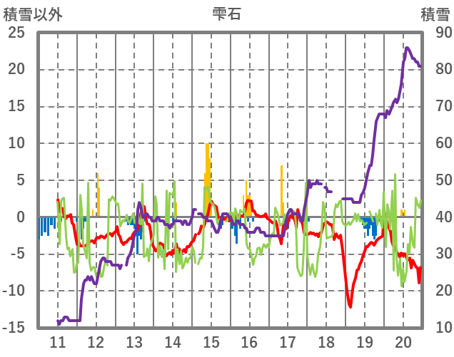 | 日 | 時 | 気温 | 降水 | 風向/風速 | 日照 | 積雪 | 降雪 |