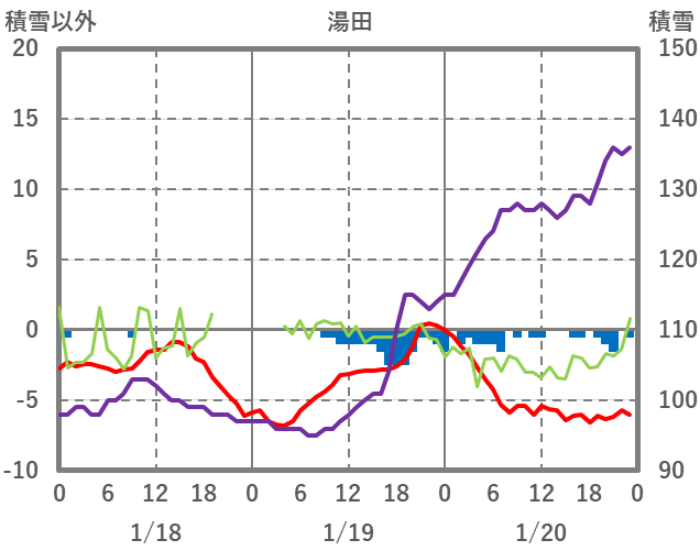 | 日 | 時 | 気温 | 降水 | 風向/風速 | 日照 | 積雪 | 降雪 |