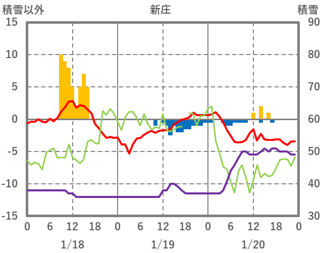 | 日 | 時 | 気温 | 降水 | 風向/風速 | 日照 | 積雪 | 降雪 |