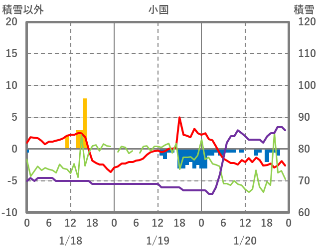 | 日 | 時 | 気温 | 降水 | 風向/風速 | 日照 | 積雪 | 降雪 |