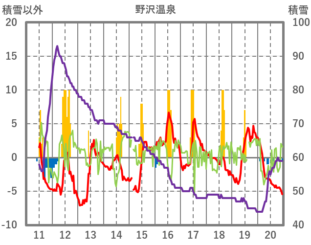 | 日 | 時 | 気温 | 降水 | 風向/風速 | 日照 | 積雪 | 降雪 |