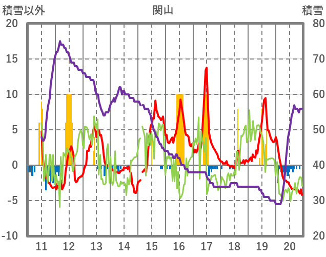 | 日 | 時 | 気温 | 降水 | 風向/風速 | 日照 | 積雪 | 降雪 |