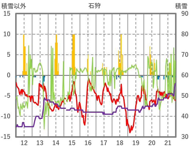 | 日 | 時 | 気温 | 降水 | 風向/風速 | 日照 | 積雪 | 降雪 |