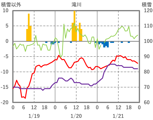 | 日 | 時 | 気温 | 降水 | 風向/風速 | 日照 | 積雪 | 降雪 |