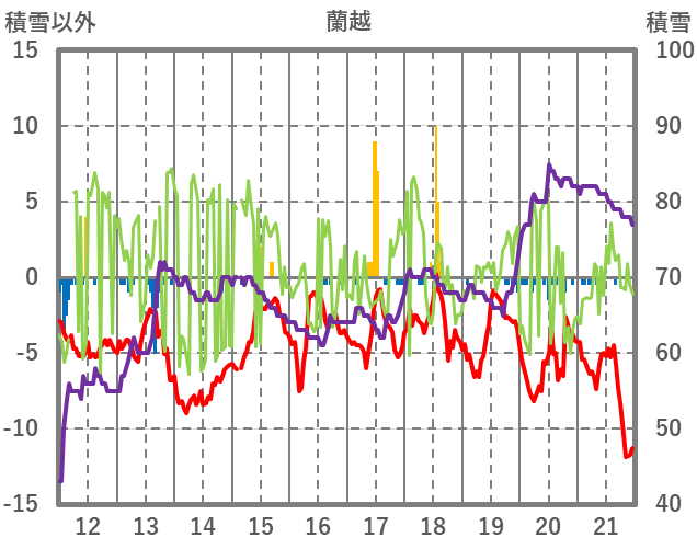 | 日 | 時 | 気温 | 降水 | 風向/風速 | 日照 | 積雪 | 降雪 |