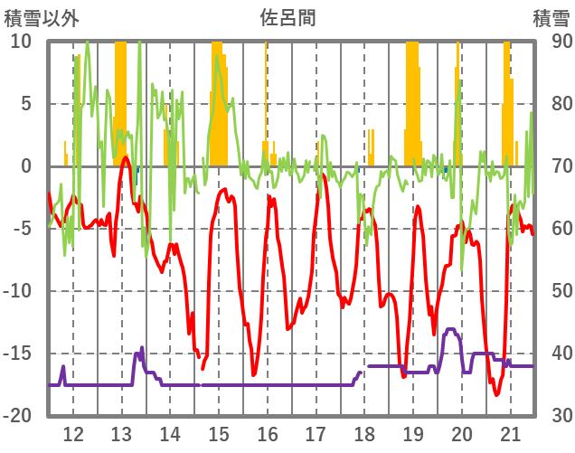 | 日 | 時 | 気温 | 降水 | 風向/風速 | 日照 | 積雪 | 降雪 |