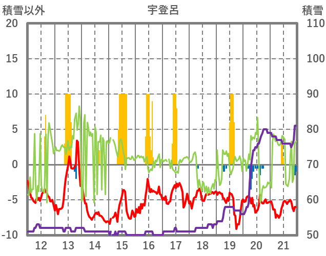 | 日 | 時 | 気温 | 降水 | 風向/風速 | 日照 | 積雪 | 降雪 |