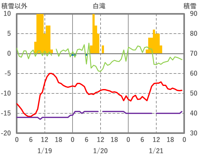| 日 | 時 | 気温 | 降水 | 風向/風速 | 日照 | 積雪 | 降雪 |