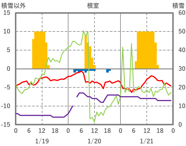 | 日 | 時 | 気温 | 降水 | 風向/風速 | 日照 | 積雪 | 降雪 |