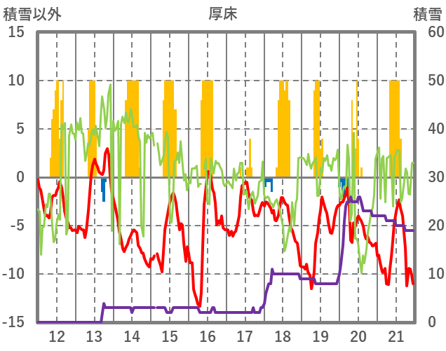| 日 | 時 | 気温 | 降水 | 風向/風速 | 日照 | 積雪 | 降雪 |