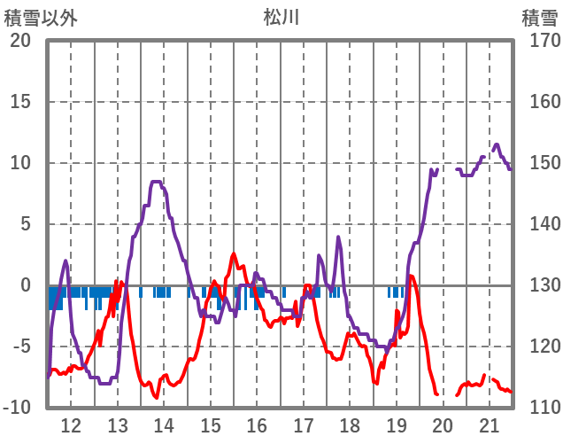 | 日 | 時 | 気温 | 降水 | 風向/風速 | 日照 | 積雪 | 降雪 |